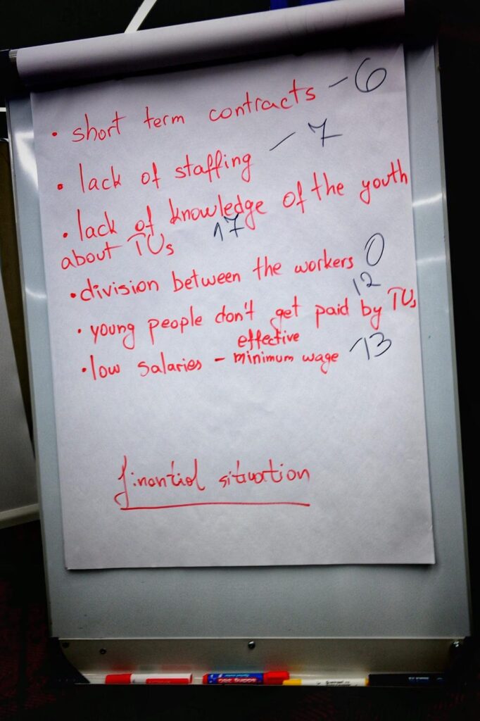 În contextul atelierelor de lucru fiecare reprezentant a relatat experiența Federației țării sale în promovarea mișcării sindicale și asigurării condițiilor decente de muncă prin prisma practicii personale. Pe parcursul reuniunii, participanții au convenit asupra unui deziderat comun, vizând intensificarea colaborării între organizațiile de tineret afiliate, promovarea condițiilor echitabile de muncă pentru tinerii din serviciile publice și sprijinirea implicării active în structurile sindicale europene.