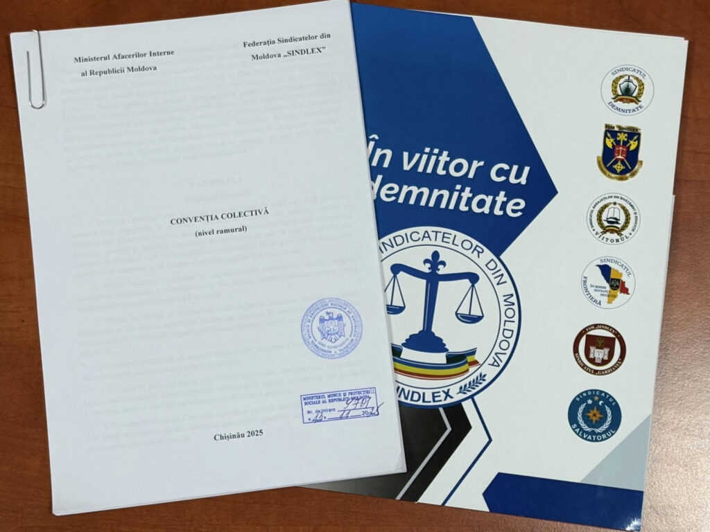 În spiritul parteneriatului social și al respectului față de angajații din sistemul afacerilor interne, astăzi, 13 noiembrie 2025 Ministerul Afacerilor Interne în persoana doamnei ministră Daniela Misail-Nichitinși Federația Sindicatelor din Moldova „SINDLEX” în persoana doamnei președintă Angela Otean, au semnat Convenția Colectivă de Muncă, un document esențial care reconfirmă angajamentul comun pentru protejarea drepturilor, promovarea dialogului și consolidarea climatului de muncă echitabil și stabil.