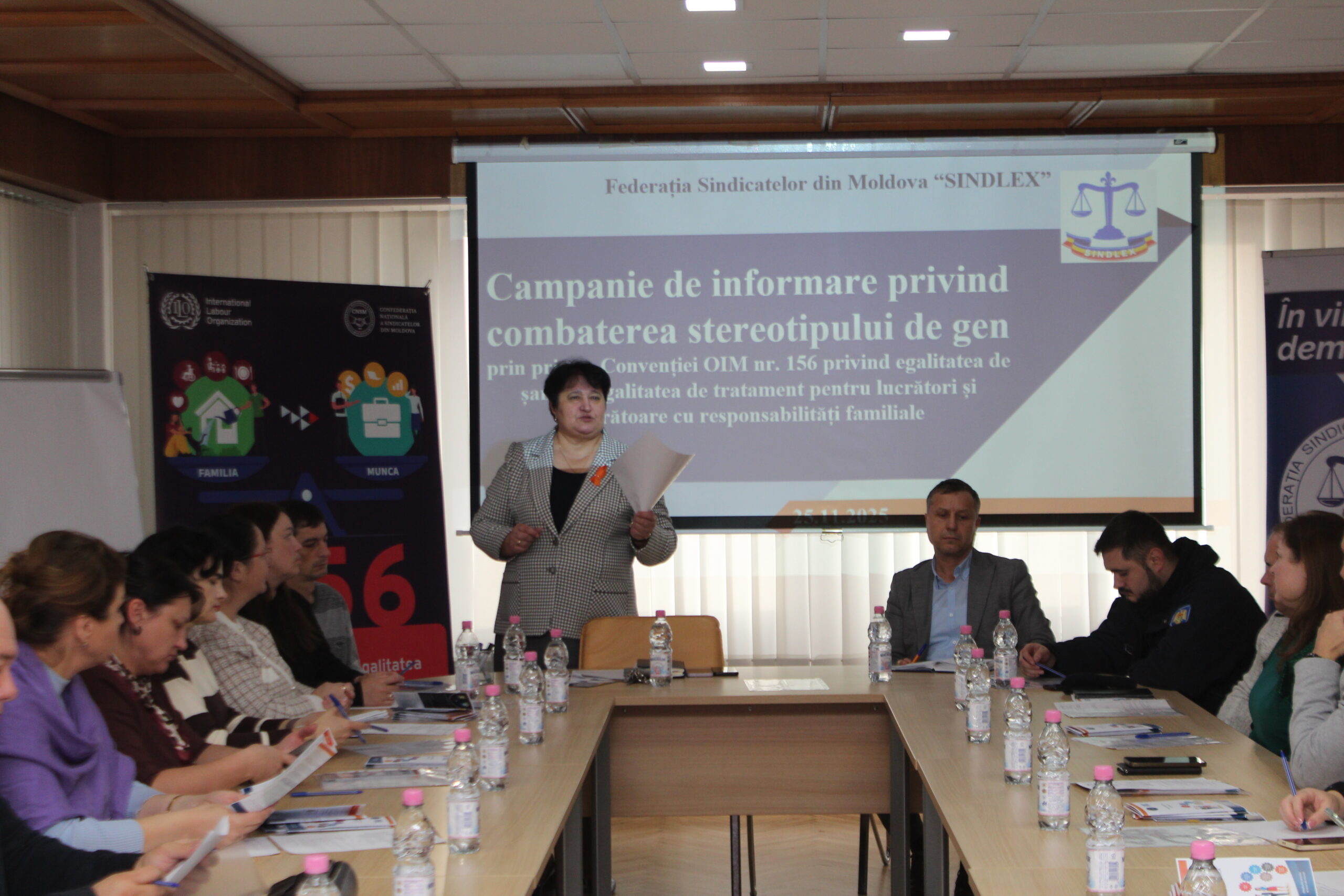 La data de 25 noiembrie 2025, Federația Sindicatelor din Moldova “SINDLEX” a organizat, la sediul Confederației Naționale a Sindicatelor din Moldova, un eveniment dedicat informării angajaților despre drepturile lucrătorilor și lucrătoarelor cu responsabilități familiale și combaterea stereotipurilor de gen.