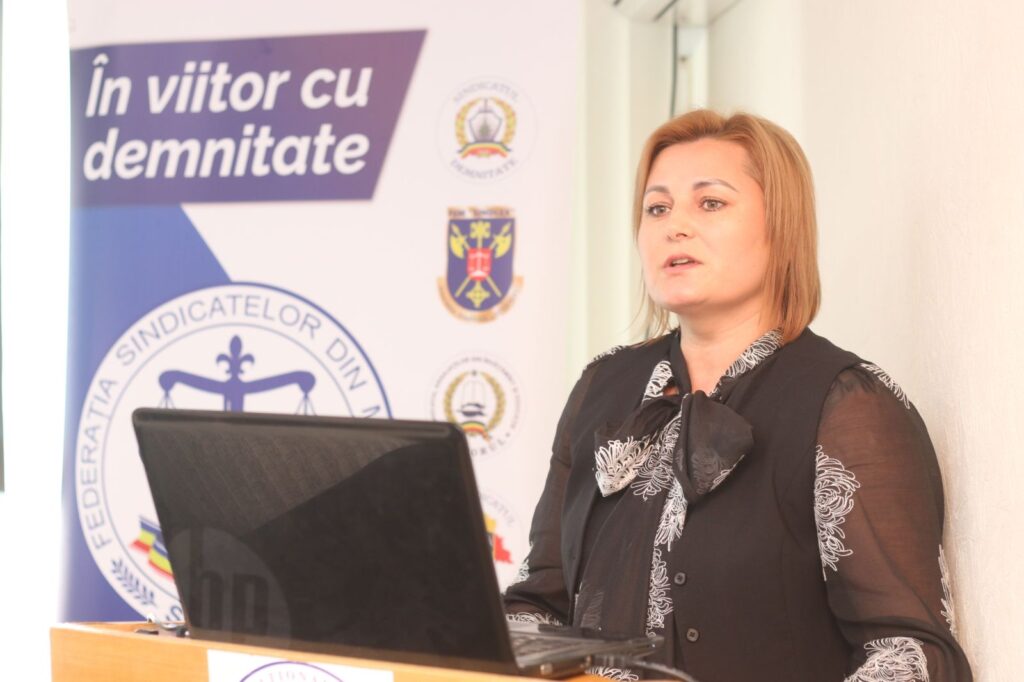 Deschiderea evenimentului a fost susținută de dna Angela OTEAN, președinta Federației Sindicatelor din Moldova “SINDLEX”, care ulterior a abordat tema negocierii și stabilirii drepturilor și garanțiilor suplimentare pentru lucrătorii cu responsabilități familiale.
