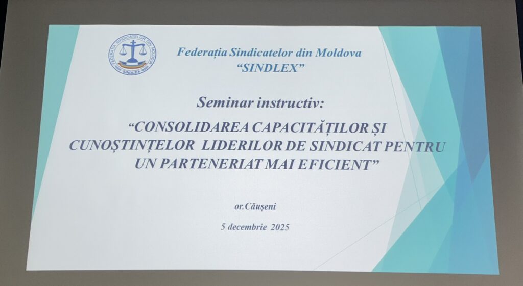 Seminarul s-a înscris în programul amplu de instruiri desfășurate de FSM „SINDLEX” în toate zonele țării, cu scopul de a fortifica rolul activului sindical și de a promova un dialog constructiv în cadrul instituțiilor și comunităților profesionale.