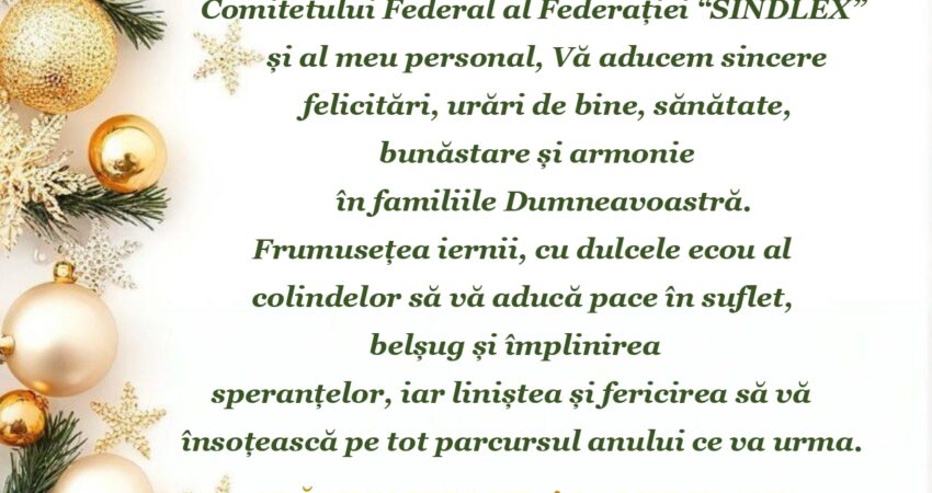 În spiritul responsabilității și al bunei guvernări sindicale, Federația „SINDLEX” a organizat ședința plenară de bilanț a Consiliului General, eveniment statutar de importanță majoră pentru evaluarea activității Federației și stabilirea direcțiilor de dezvoltare pentru perioada următoare. Lucrările ședinței s-au desfășurat…