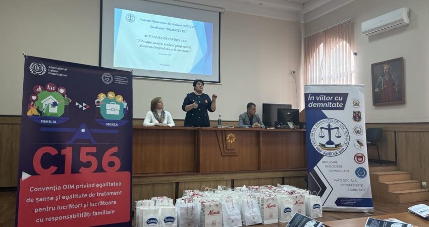 La data de 25 noiembrie 2025, Federația Sindicatelor din Moldova “SINDLEX” a organizat, la sediul Confederației Naționale a Sindicatelor din Moldova, un eveniment dedicat informării angajaților despre drepturile lucrătorilor și lucrătoarelor cu responsabilități familiale și combaterea stereotipurilor de gen. La…